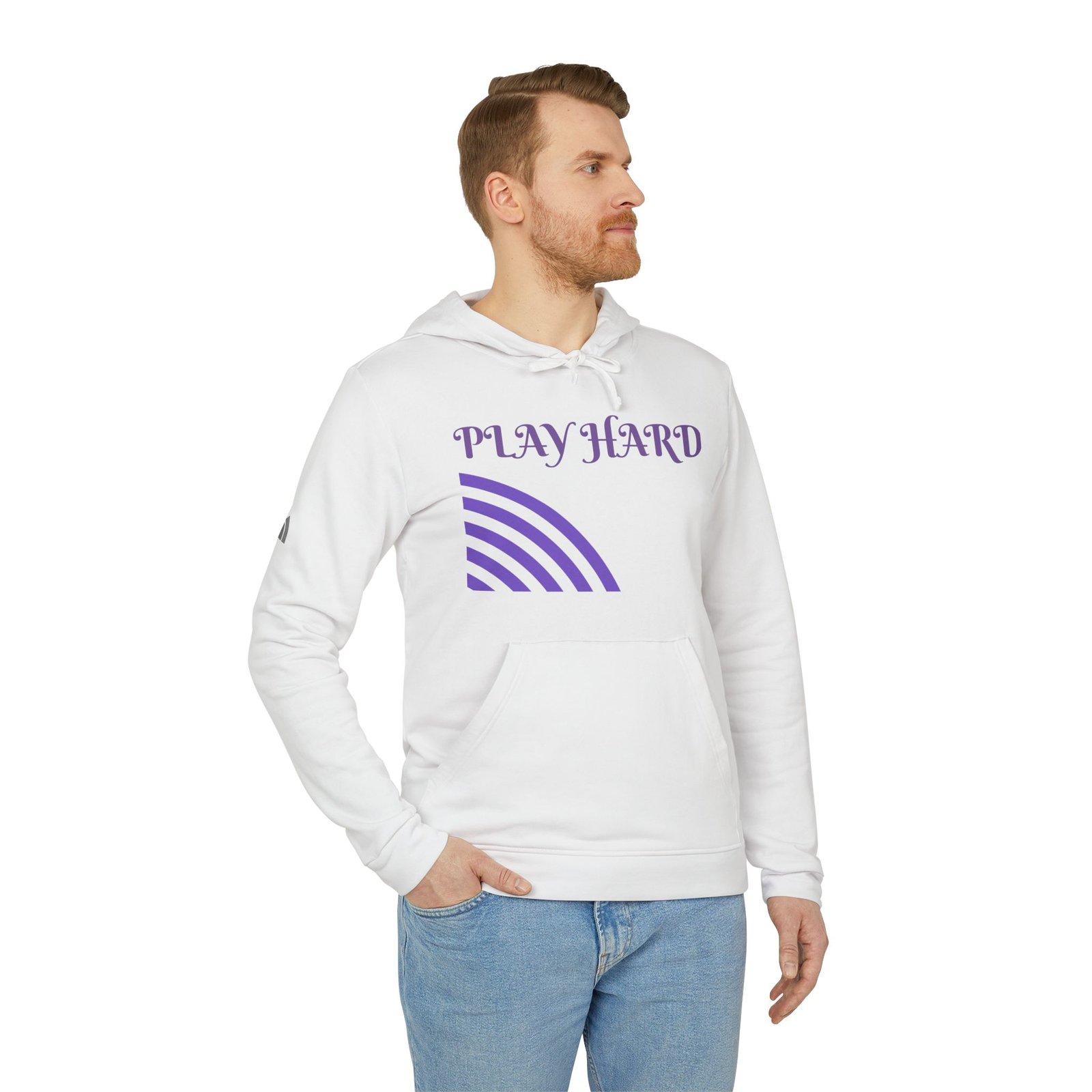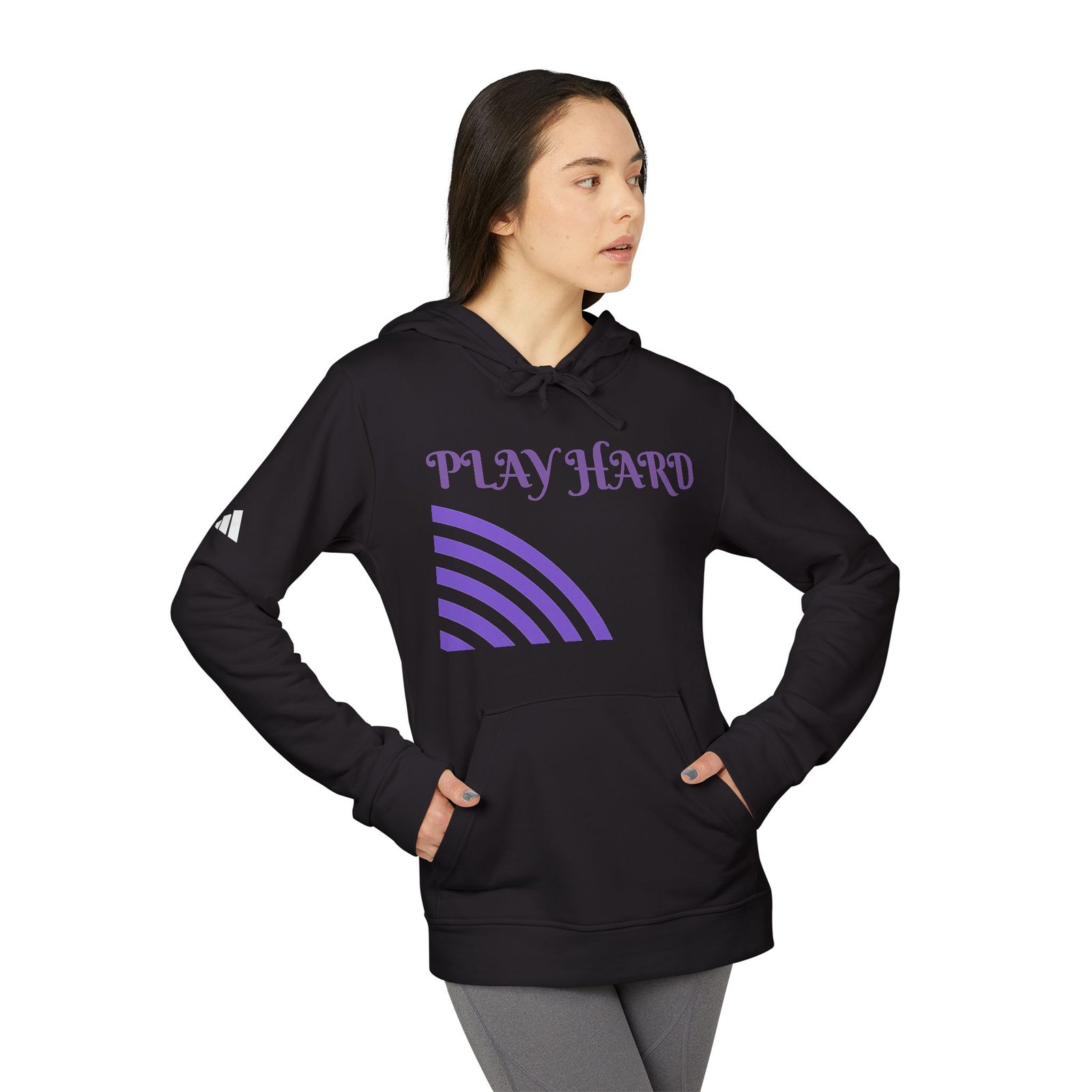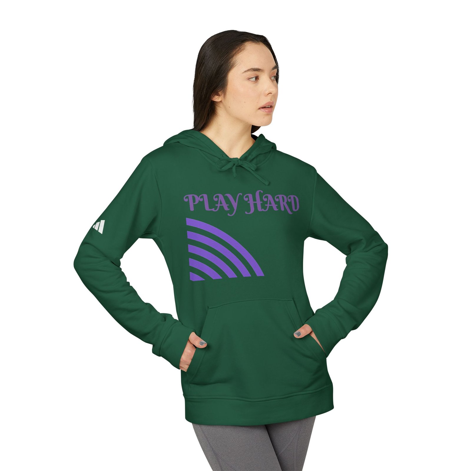 Combining comfort with sustainability, this unisex adidas® fleece hoodie redefines cozy cool. Crafted from a blend of 70% BCI cotton and 30% recycled polyester (Dark Grey Heather variation features a 55/45 polyester/cotton mix), it prioritizes eco-friendly materials without sacrificing softness or warmth. Equipped with a practical 3-panel hood complete with drawcord and a convenient pouch pocket so that it’s as functional as it is stylish. Elevating its street-ready appeal, the contrasting adidas® logo adorns the right arm, making a bold statement of athletic authenticity. Designed by TB’s.